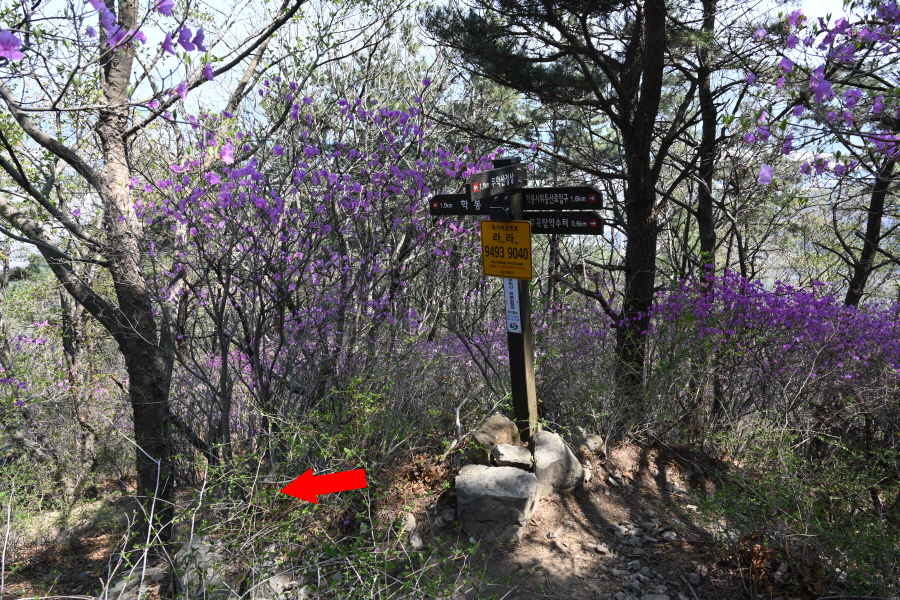 직진해 진달래 터널을 내려갑니다.