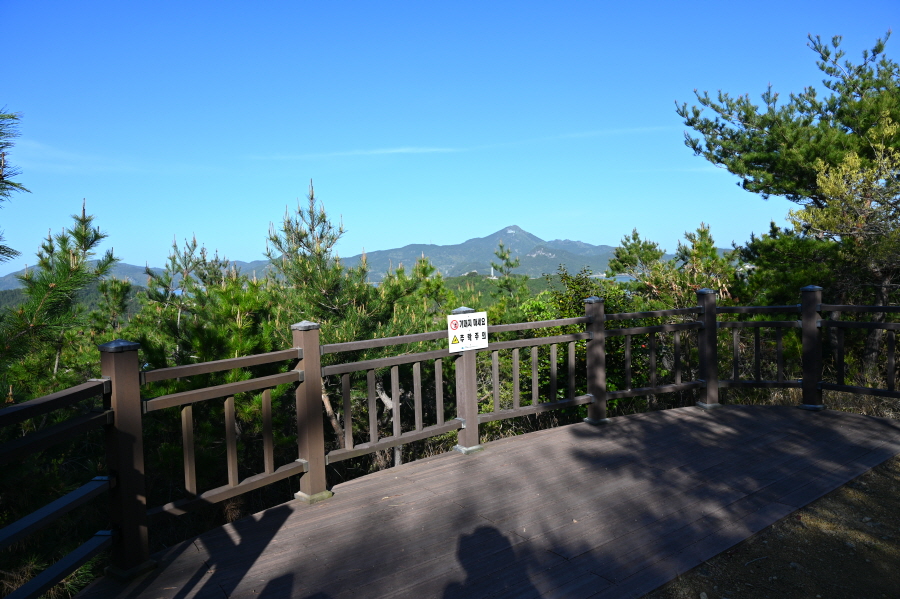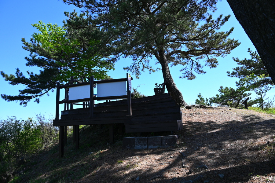 한산도 역사길 게이트를 빠져나갑니다. 해송 숲길을 가다 침목계단을 올라가면 산길은 평탄해지며 학익진전망대가 나옵니다. 학익진이 펼쳐졌다는 한산만 조망은 일부 가리지만 해송 숲이 뿜어내는 싱그러운 아침공기는 갯내 음과 어울려 더욱 상쾌했습니다.