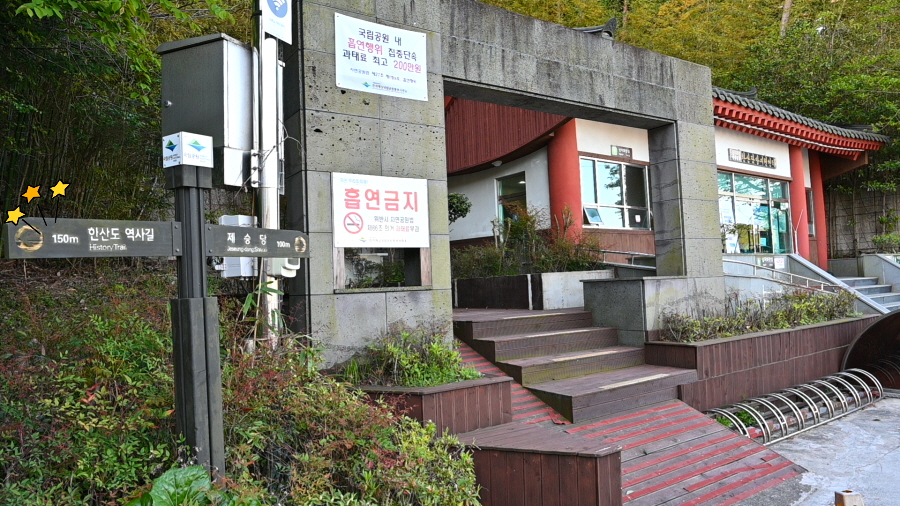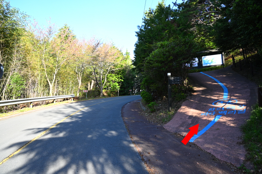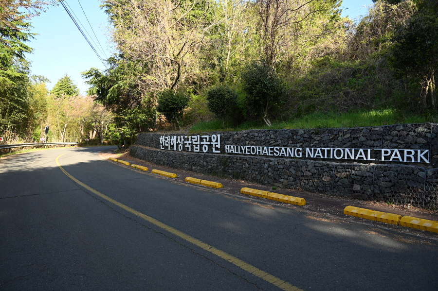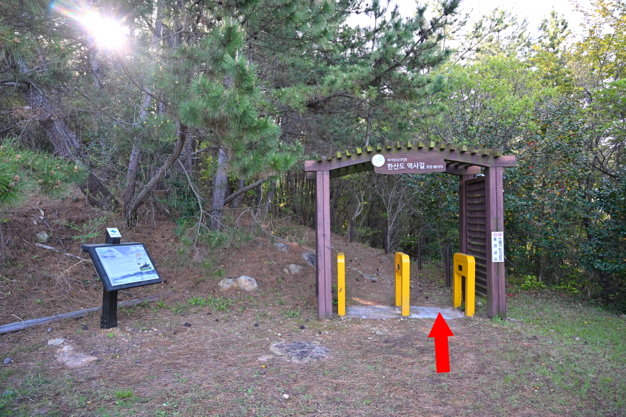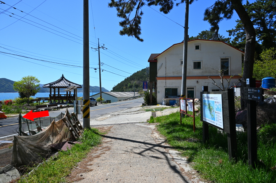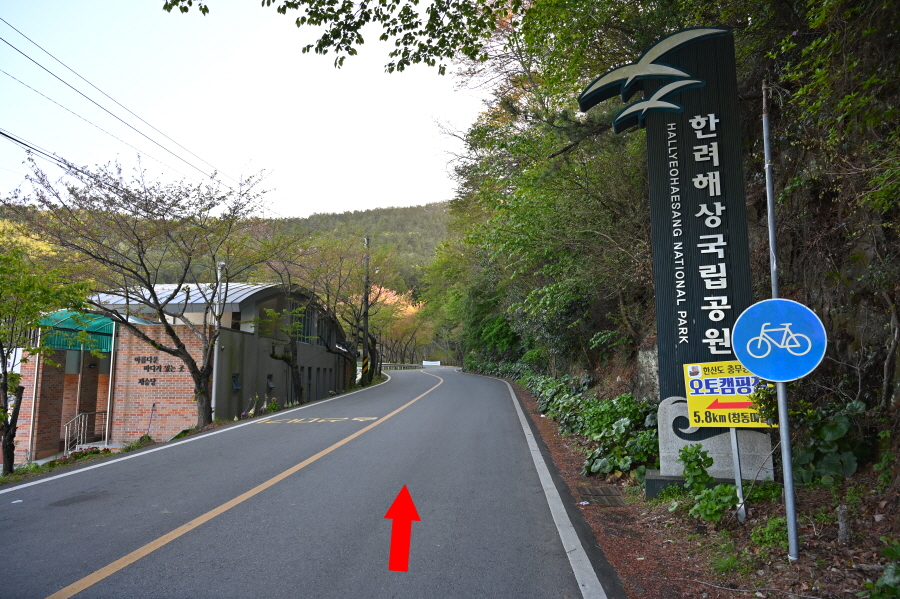 바다 백리길구간인 한산도 역사길을 먼저 걷고 나서 둘러보기로 하고, 선착장을 출발합니다. 탐방지원센터 앞에서 왼쪽 한산도 역사길(0.15㎞) 이정표를(0.15㎞) 보고 도로를 걷습니다. 한려해상국립공원 입간판을 지나 약 4분이면 바다 백리길 갈림길 입구에 도착합니다.