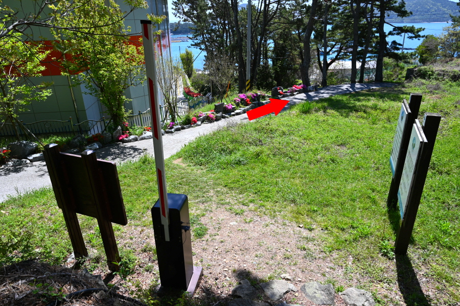 오른쪽 야소(7.5㎞)·진두(7.2㎞)·망산(4.7㎞) 방향으로 하늘색 선이 그어진 콘크리트길을 올라가면 거북등대 전망대와 바다 백리길 2구간인 한산도 역사길 출입문이 나옵니다.