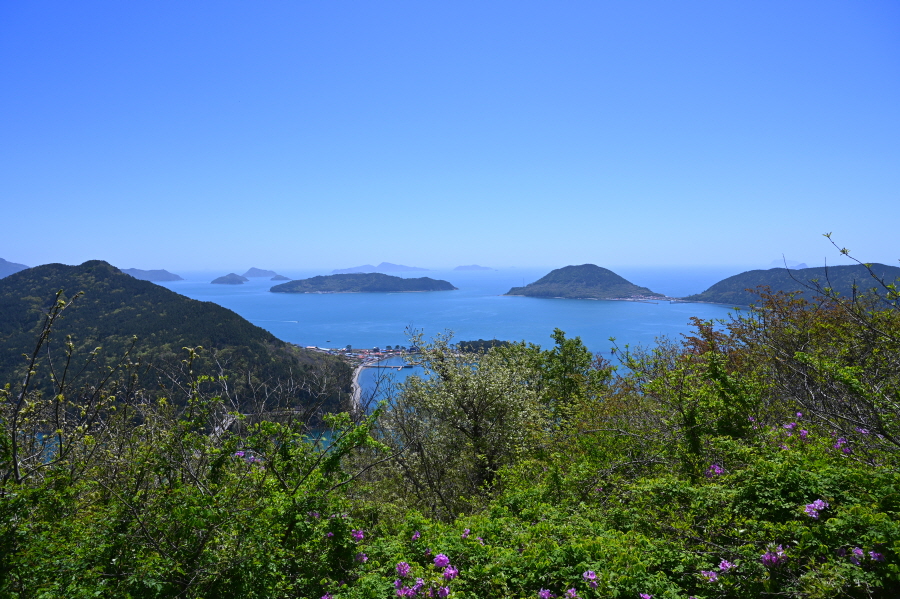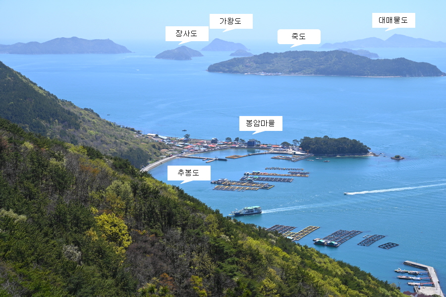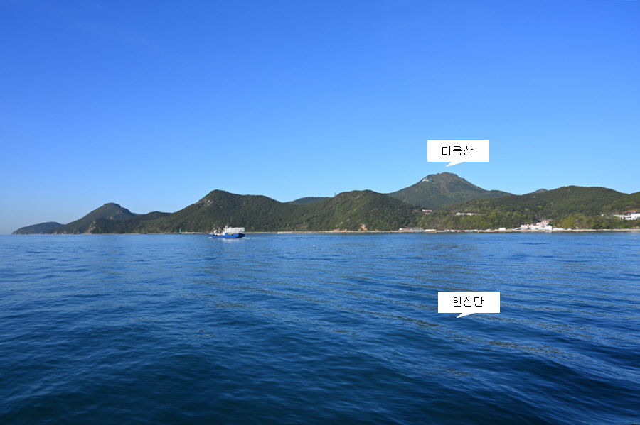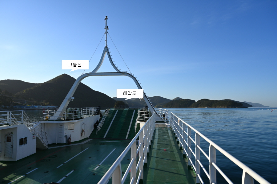 통영항여객터미널을 출발한 여객선은 죽도를 스치듯 지나가면 정면에 원추형을 닮은 고동산(高銅山·181m)이 막아섭니다. 고동산은 임진왜란 때 우리 수군이 ‘소라고동’을 불어 연락을 취했다는데서 유래합니다.