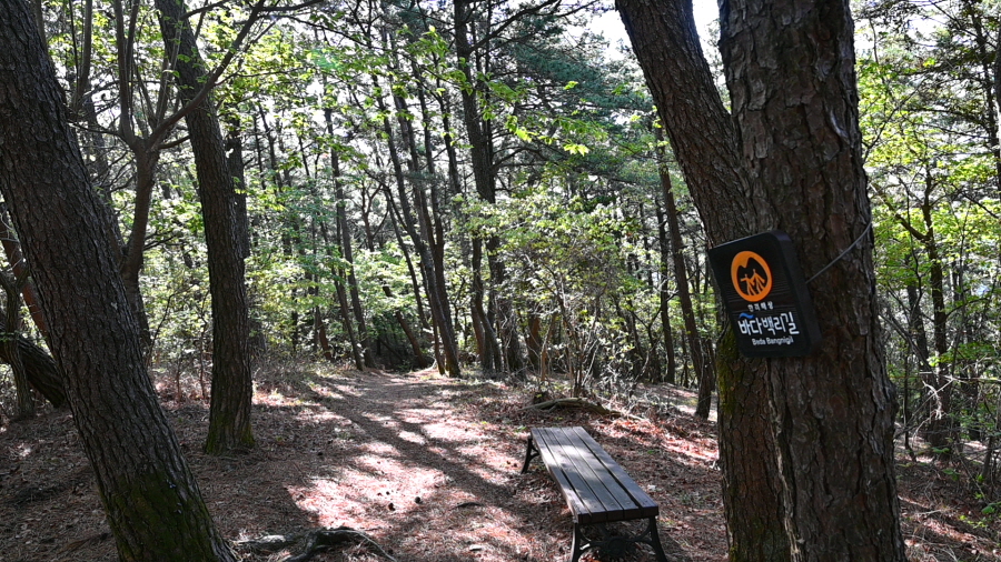 아름드리 편백과 소나무는 삼림욕장을 떠올릴 만큼 숲이 울창한 데다 완만한 흙길 능선은 비단길같이 부드럽습니다. 심호흡을 크게 해 피톤치드를 들이마시며 걷습니다.