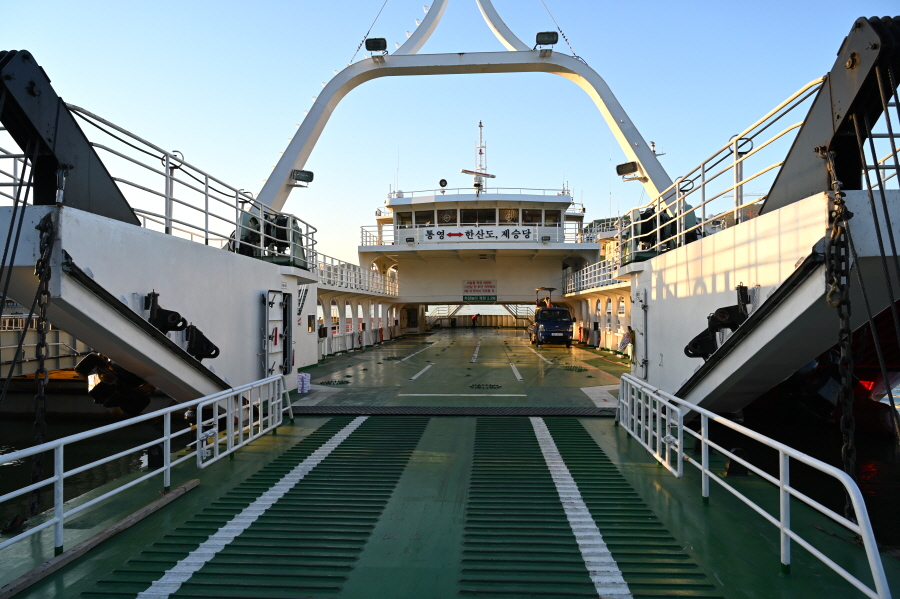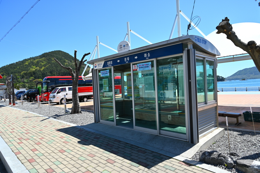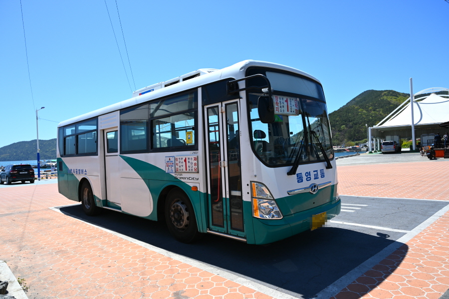 산행 뒤 진두마을에서 제승당선착장으로 가는 1번 버스를 탑니다. 오후 1시 1시35분 2시5분 2시50분 3시35분 4시5분 등에 있습니다. 약 30분소요. 제승당선착장에서 통영항으로 나가는 배편은 우성해운은 오후 2시35분 3시35분 4시35분 5시35분이며, 한산농협카페리는 오후 2시5분 4시5분 5시20분 6시50분에 있습니다. 통영종합터미널에서 부산행은 막차 오후 8시16분이며 심야버스(밤 10시)도 있습니다.