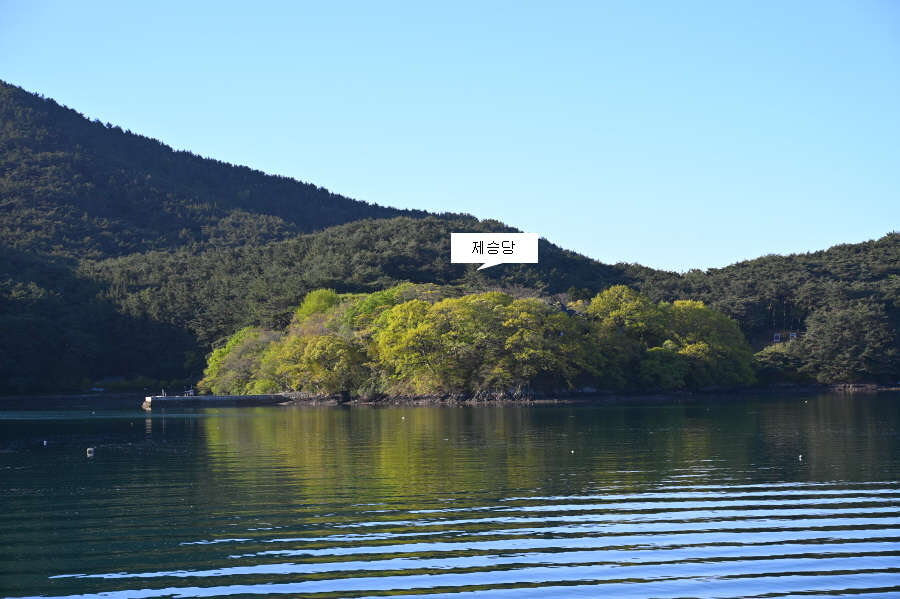 고동산 아래 작은 섬은 해갑도(解甲島)인데, 이순신 장군이 한산해전에서 승리하고 이 섬에서 갑옷을 벗었다고 합니다. 필자가 탄 배는 30분이나 걸려 제승당 선착장에 도착했습니다. 첫배로 들어오다 보니 제승당 관람은 할 수 없었습니다.