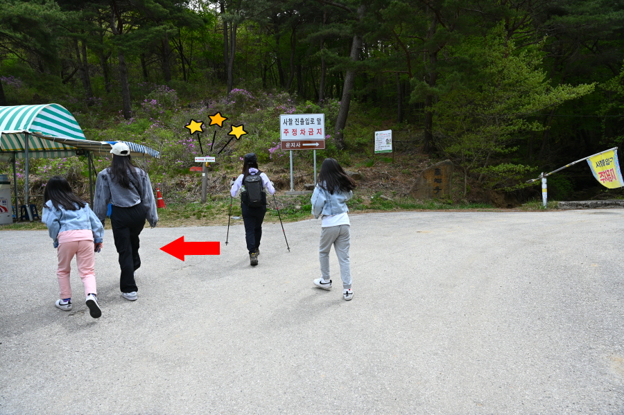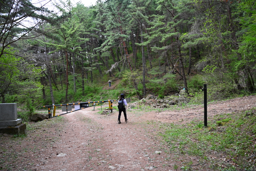 계곡에 물소리가 들리고 국립공원 경계 구역을 벗어나 40분이면 차단기를 지납니다.