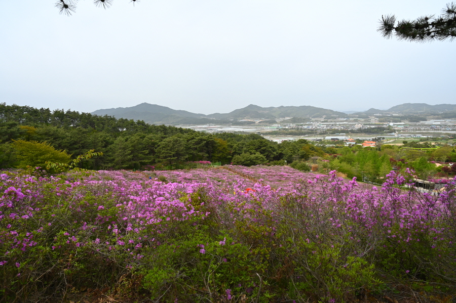 허브밸리 위에 조성한 철쭉 군락은 꽃이 활짝 폈으나, 철망 울타리에 막혀 ‘그림의 떡’을 보듯 눈으로만 보고 지나칩니다.