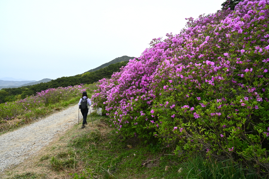 1.5㎞ 거리인 팔랑치까지 넓고 완만한 길이 이어집니다. 양쪽으로 철쭉나무가 울타리를 만들었습니다.