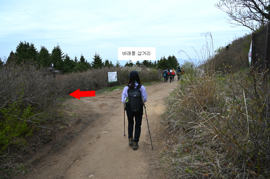 주위에 산림복원으로 심었던 구상나무가 이제 울창한 숲을 만들었습니다. 바래봉(0.6㎞)은 직진합니다.