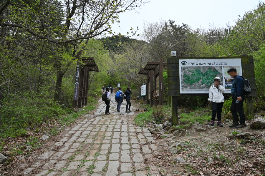 국립공원 안으로 들어서는 탐방로 입구를 통과합니다. 산길은 토사 유출을 막기 위해 바둑판같은 납딱한 돌을 바래봉 삼거리까지 깔아 놓았습니다.