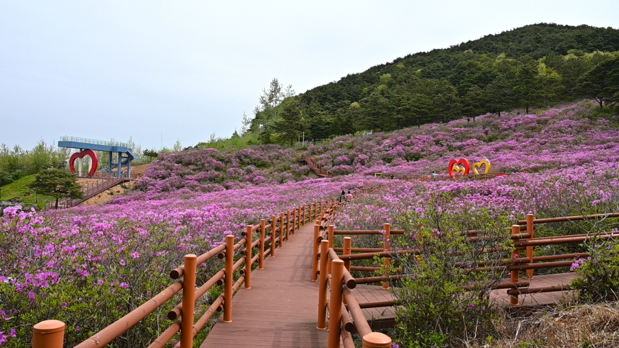 왼쪽 덱에서 철쭉 군락 뒤로 운봉읍 전경이 펼쳐집니다. 길 옆으로 만개한 철쭉이 필자에게 눈인사를 했습니다.