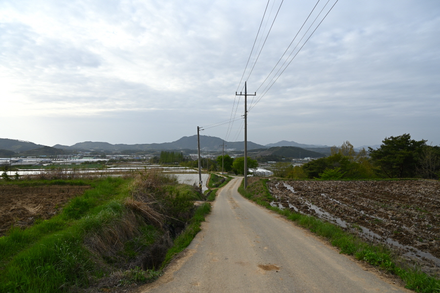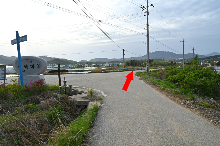 또 한 곳은 주민이 통행하는 길인데, 콘크리트 농로를 내려가다 ‘산덕길 206’ 가건물을 약 200m 지나 전봇대에서 오른쪽으로 내려가는 길입니다. 논두렁 길을 걸어 용산마을을 거쳐 허브밸리로 가면 됩니다.