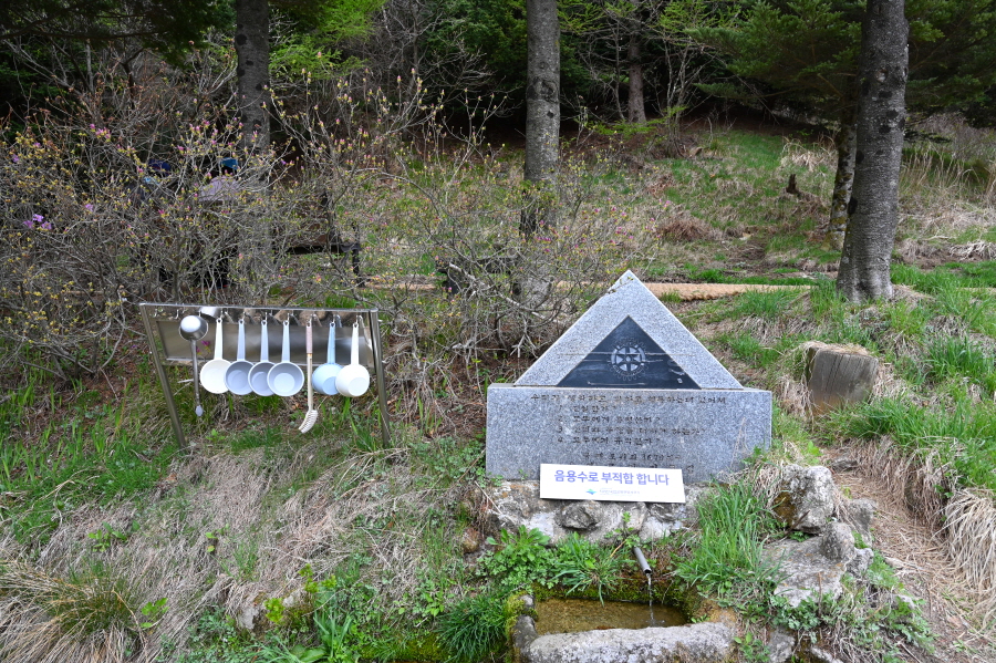야자매트가 깔린 평탄한 산길은 5분이면 샘터에 도착합니다. 식수로 부적합 해 먹을 수 없답니다. 지리산 태극종주를 할 때면 식수를 보충하는 중요한 샘인데, 이제 오염으로 음용할 수 없다는 게 안타깝습니다.