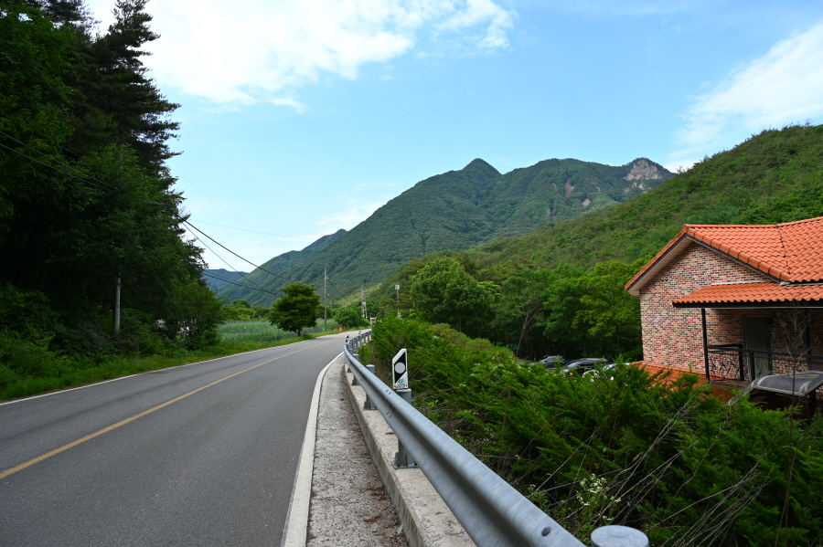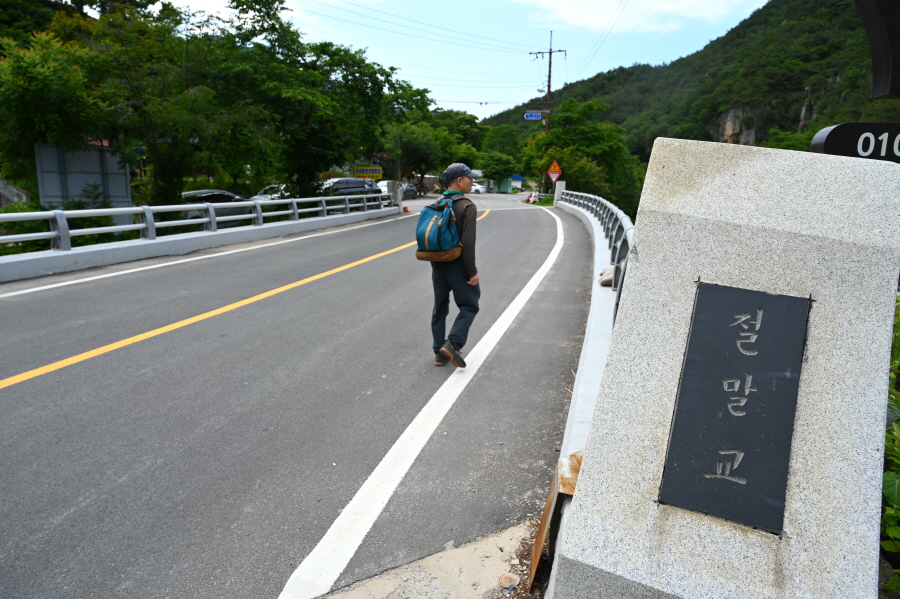 517번 지방도가 지나가는 절말 마을에서. 떡바위 출입문은 오른쪽 절말교를 건너 약 20분이면 도착합니다.