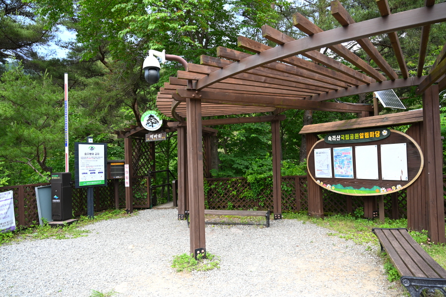 잠시 한산해진 틈을 타 정상석을 사진에 담고 절말주차장(4.3㎞)으로 덱 계단을 내려갑니다.