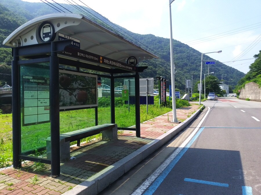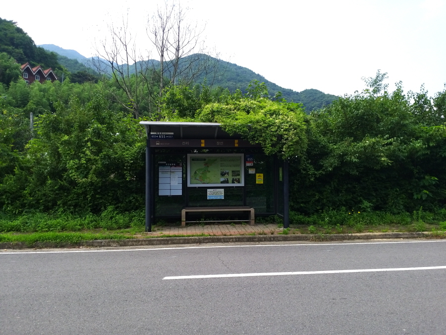 배내골의 송림숲을 보며 장선 2교를 건너 오른쪽 도로를 따라 약 18분이면 장선버스정류장에 도착합니다.