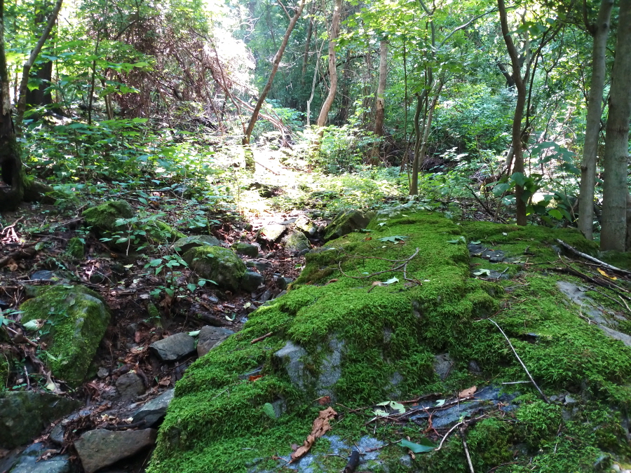 계곡에서 뿜어내는 냉기가 등줄기의 땀을 식혀 줍니다. 사방이 막힌 데다 골이 깊어 그야말로 적막강산(寂寞江山)입니다. 그저 땅만 보고 '큰 비탈'을 뜻하는 한피기고개로 묵묵히 오릅니다.