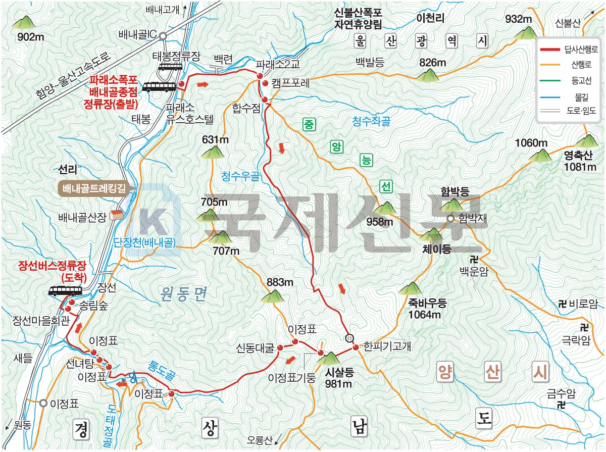 ※양산 영남알프스 배내골 청수우골~시살등~통도골 대중교입니다.