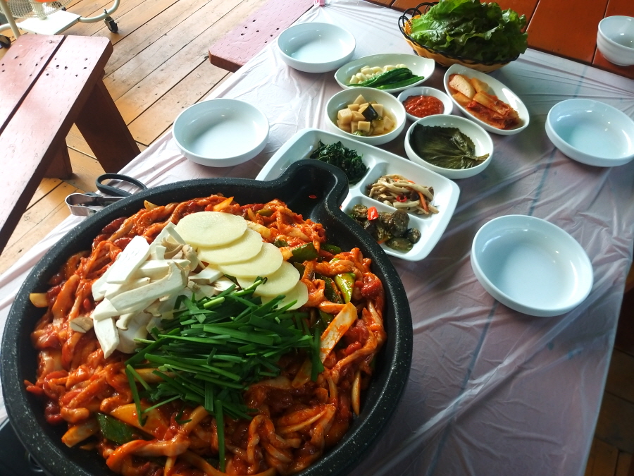 맛집 한 곳 소개합니다. 산행으로 땀을 쏙 뺐다면 보양식을 먹어 줄 차례, 청둥오리 불고기와 능이·옻·구지뽕이 들어간 닭백숙, 청둥오리백숙을 잘한다고 입소문 난 '배내골산장(055-387-3292)'이 괜찮습니다.. 청둥오리 불고기 60000원(사진) 능이 구지뽕 촌닭백숙·청둥오리백숙 각 80000원