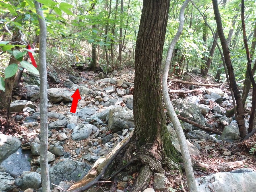 산길은 가파른데다 빗물에 휩쓸려 등산로가 사라진 곳도 더러 있습니다. 길 찾기에 주의하며 미끄러지지 않도록 합니다.