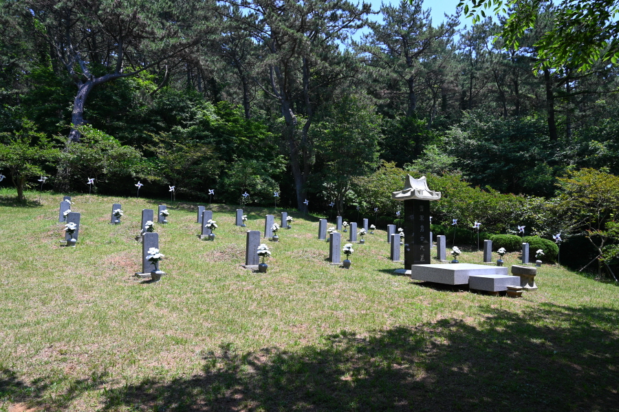 국군용사충혼비 오른쪽에 국군묘지를 참배하고 나옵니다. 가덕도 출신으로 6.25 한국 전쟁 때 전사한 25분의 영령이 잠들어 있습니다.
