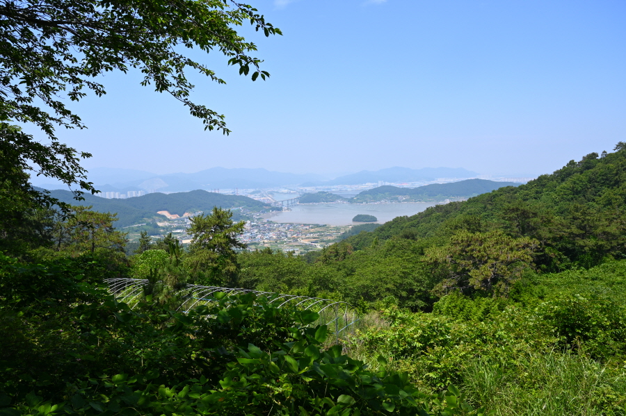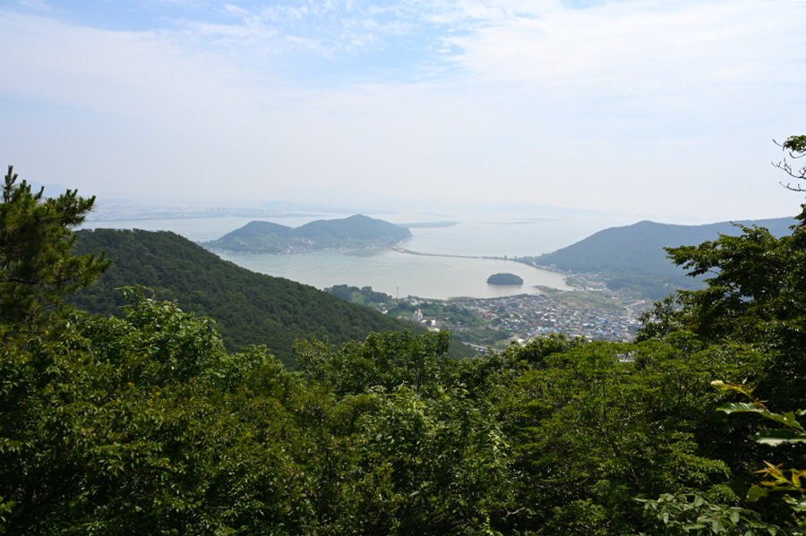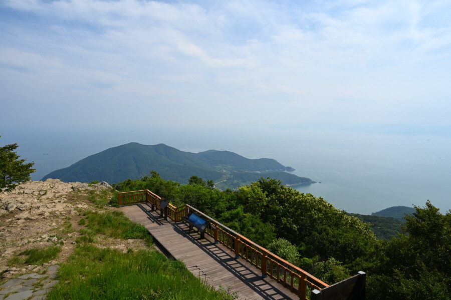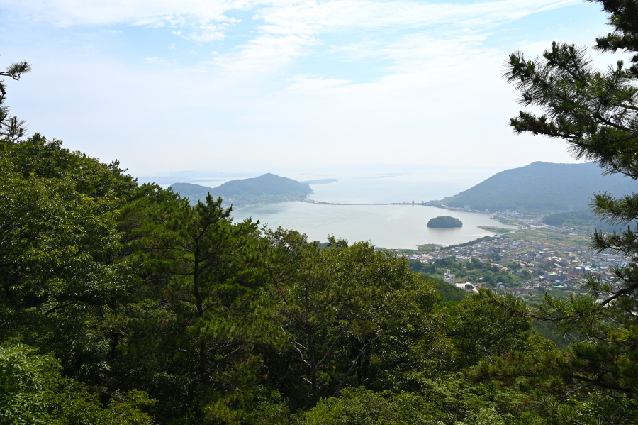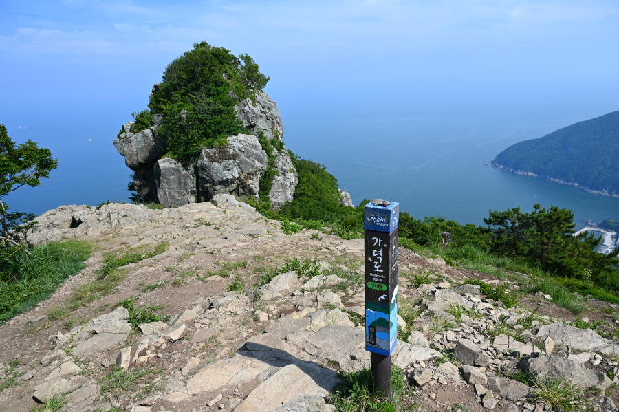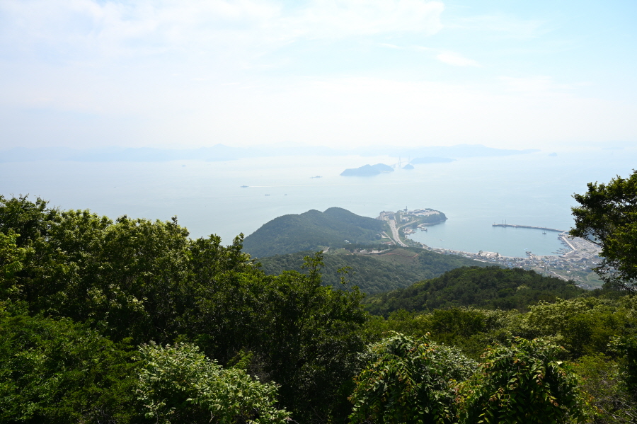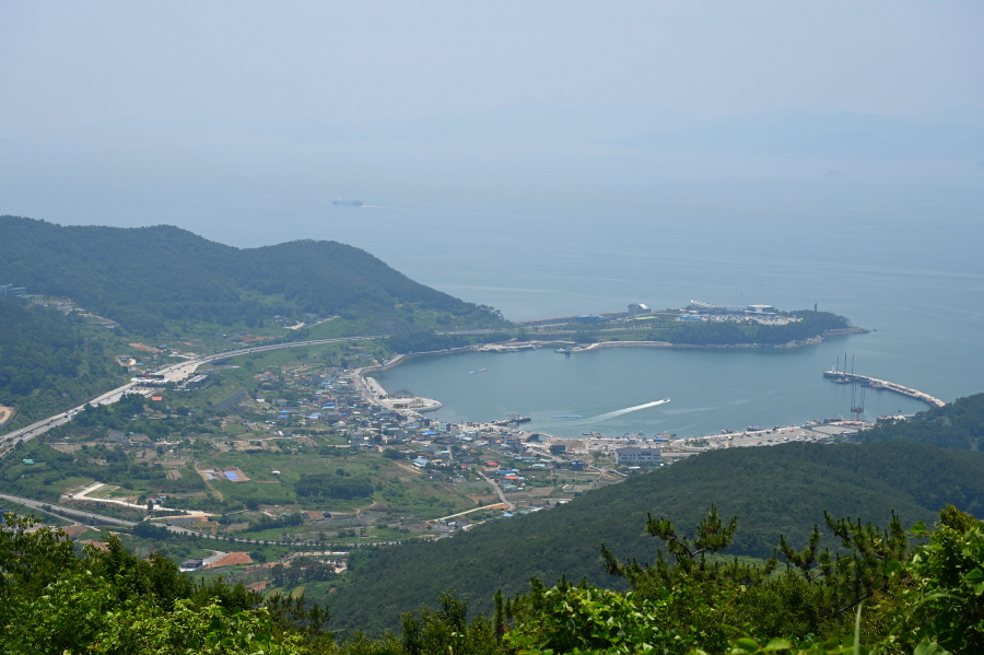 처음으로 바위 전망대에 조망이 열립니다. 가덕도와 눌차도 사이를 동선 방파제로 막아 호수가 된 눌차만의 전경이 보입니다.