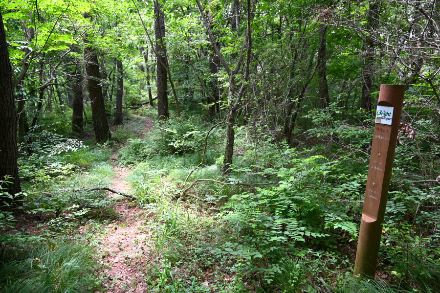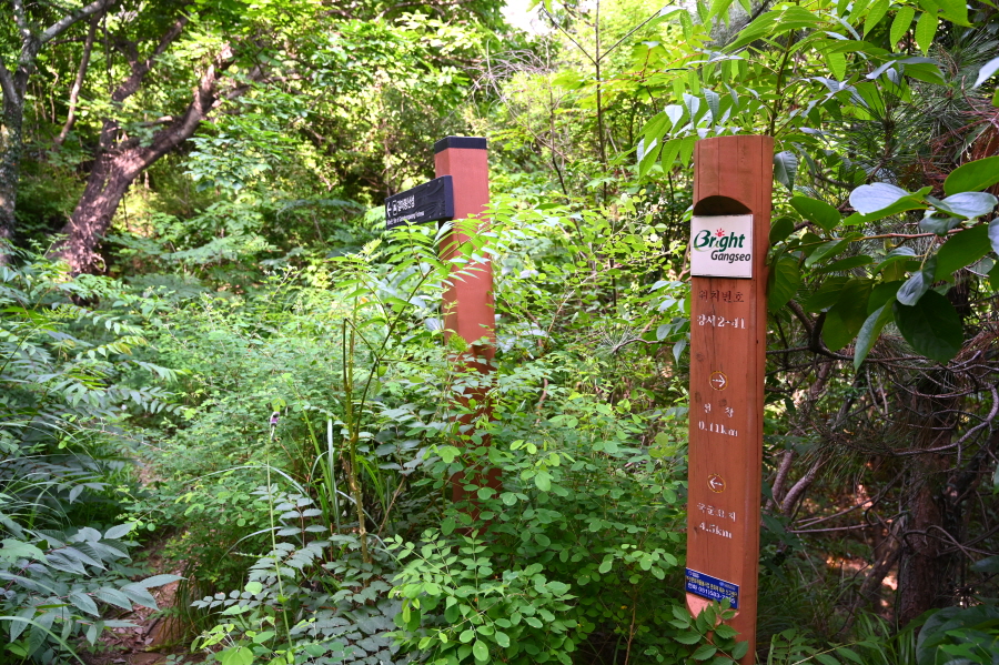 완만한 능선은 ‘위치번호 강서 2-31·국군묘지(2.0㎞)’ 표지목에서 살짝 오르막 능선을 탑니다.