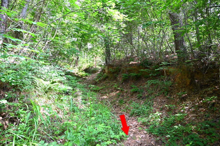 편백과 활엽수가 만든 숲 그늘을 따라 능선에 올라섭니다. 오른쪽 국군묘지(4.19㎞)로 꺾습니다. 100m 가면 갈마봉 산성 흔적이 나오며 왼쪽입니다.