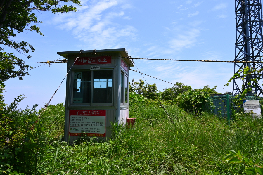산을 깎아 낸 곳을 지나 15분이면 억새밭에 조망이 터지는 웅주봉에 도착합니다. 산불초소와 산불무인감시카메라가 있습니다.