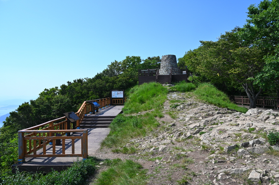 완만하던 길은 가파르게 올라갑니다. 낙동강 하구와 진우도 신자도 장자도 대마등 도요등 다대포해수욕장 몰운대가 보이는 포토존 전망 덱을 지나 약 30분이면 봉수대가 있는 연대봉 정상에 올라섭니다.