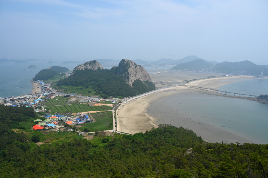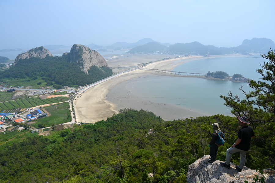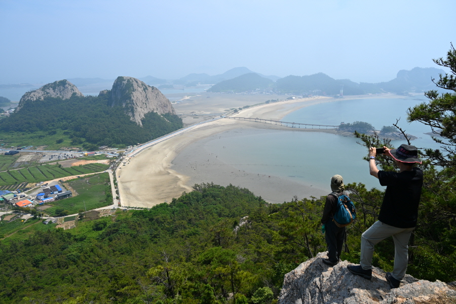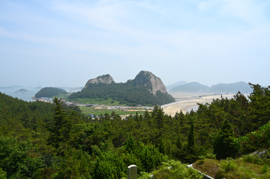 신시도 무녀도와 두 섬을 연결한 다리의 주탑이 보이며 선녀가 누운 모습을 했다는 선유봉 앞으로 선유도해수욕장과 어우러진 망주봉의 산수화 같은 풍경이 펼쳐집니다.