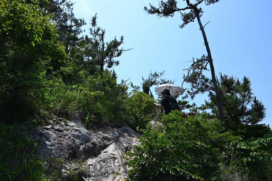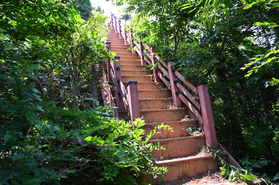 이제부터 산길을 탑니다. 망주봉 전망이 열리는 쌍무덤을 지나 된비알에 덱 계단이 놓였습니다. 약 20분이면 봉우리에 올라섭니다.