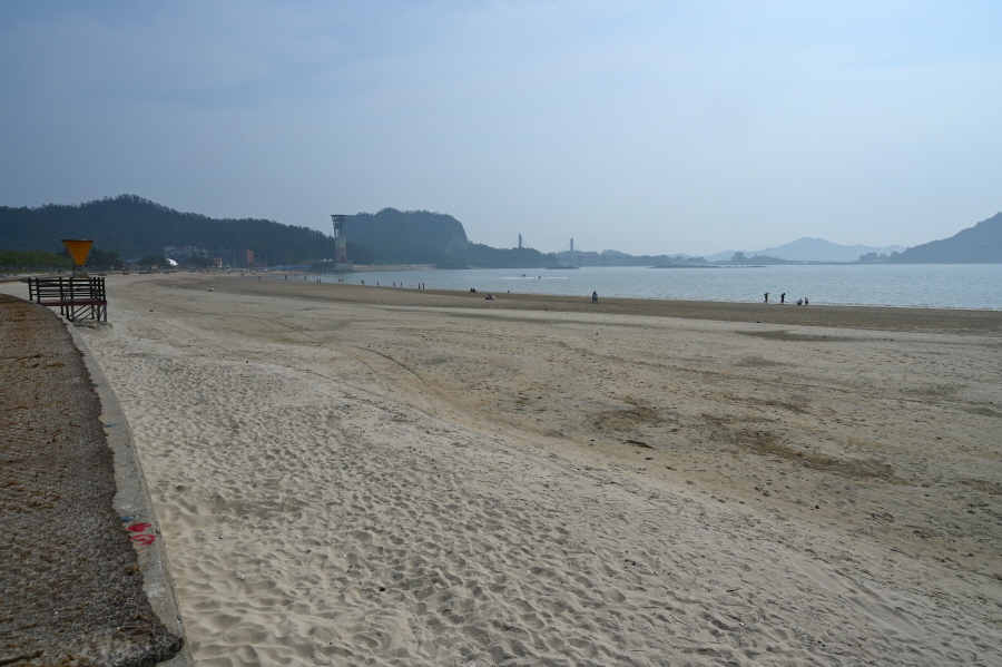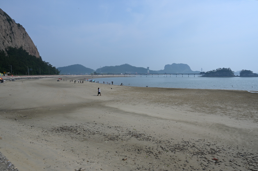 A코스는 오른쪽 화장실을 지나 선유도해수욕장을 두른 해변 길을 걷습니다. 수심이 얕은데다 모래가 곱고 깨끗하며, 길이가 십리에 이를 만큼 넓어 명사십리해수욕장으로도 불립니다.