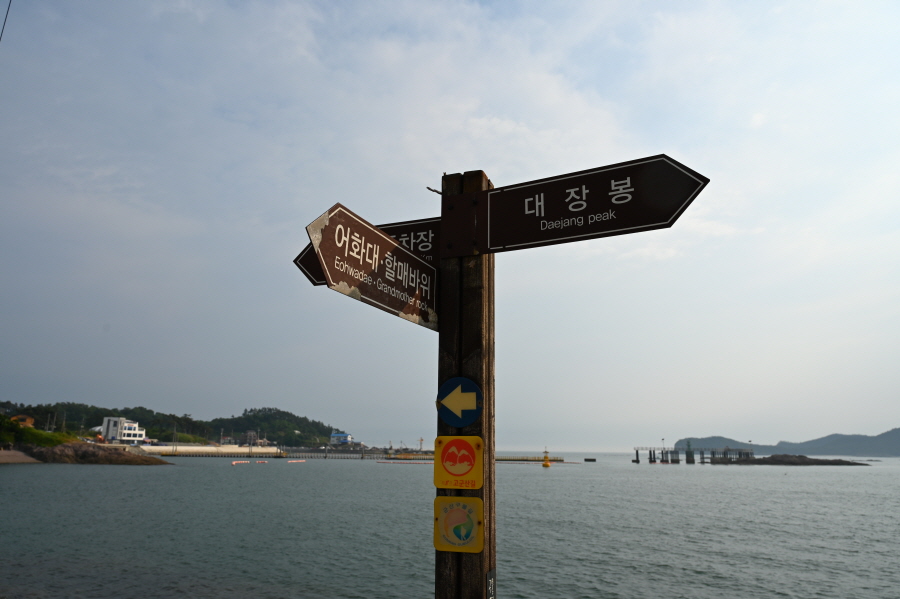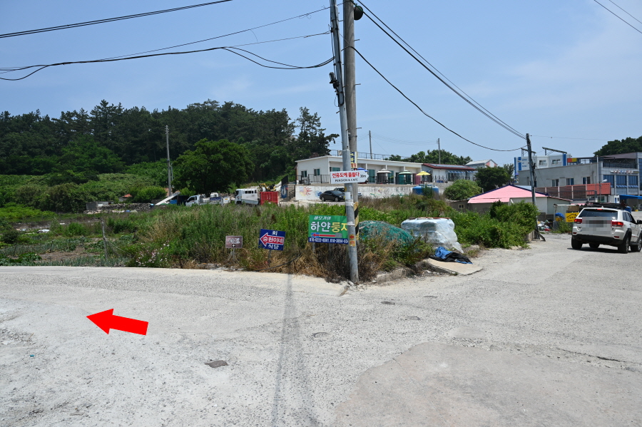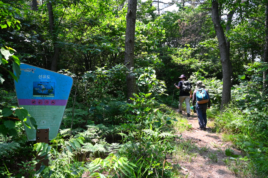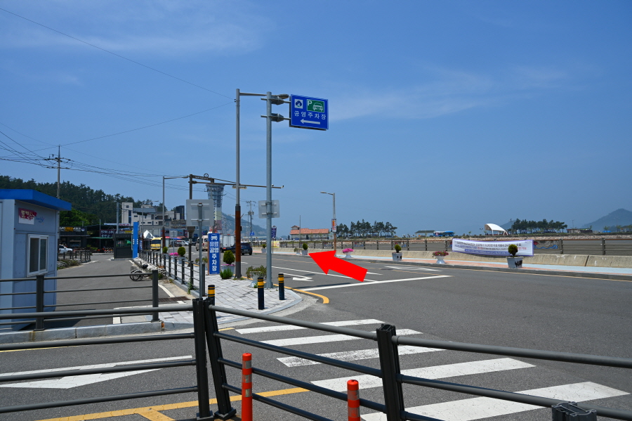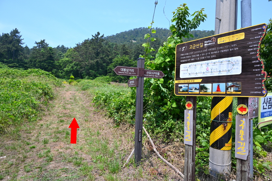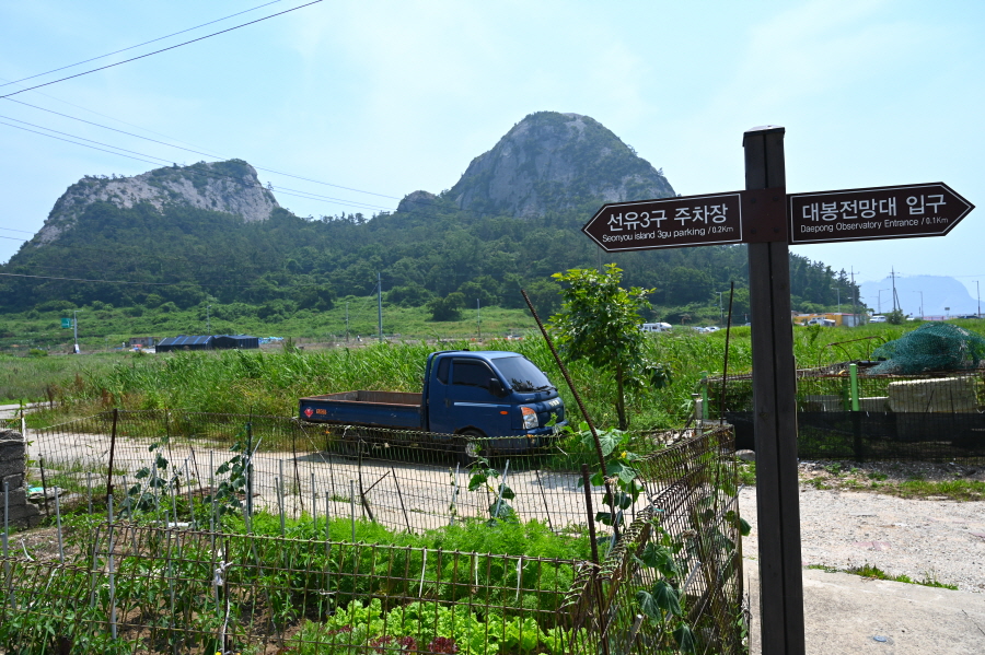 등대 횟집에서 왼쪽이며 마을 공동우물을 지나 골목을 빠져나가 선유 3구 공영주차장에서 6분이면 대봉전망대 입구 갈림길에 도착합니다. 대봉전망대(1.0㎞)는 오른쪽으로 꺾습니다.
