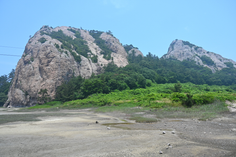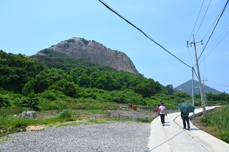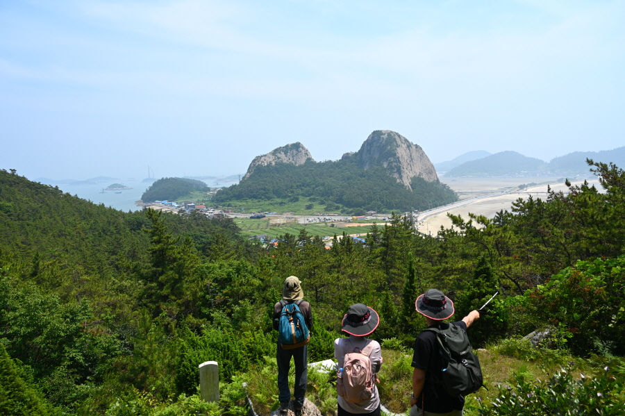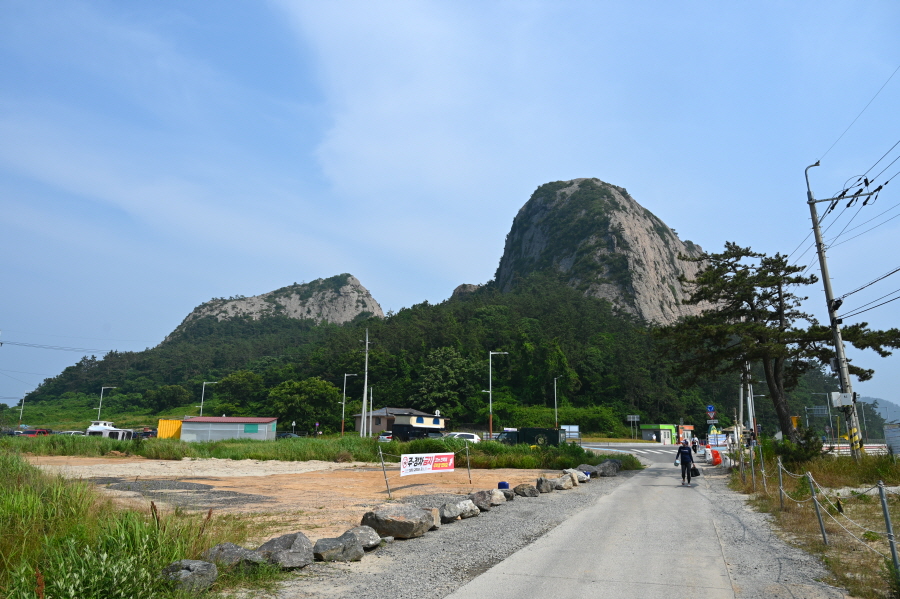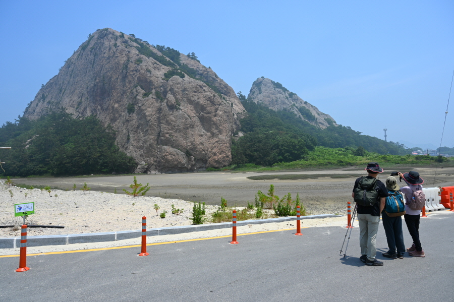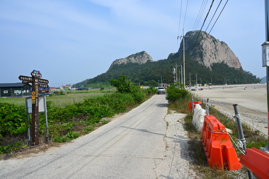 군산시 옥도면 선유도보건지소 공영주차장에 차를 대고, 주차장을 나와 정면에 물 빠진 갯벌과 진안의 마이산을 닮은 예사롭지 않은 두 암봉인 망주봉을 보며 왼쪽으로 꺾습니다. 구불 8길은 고군산탐방지원센터 앞 선유도해수욕장 광장에서 출발합니다.