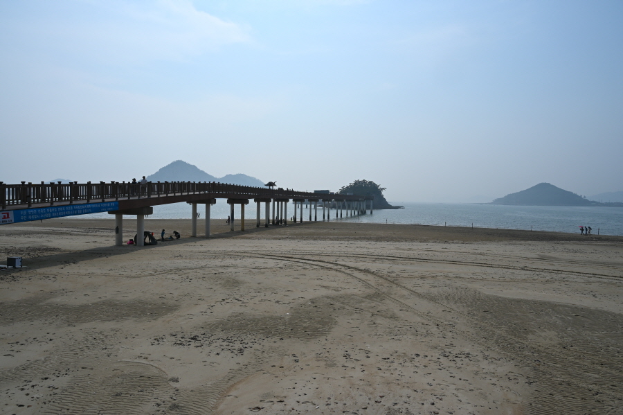 모래 언덕이 길게 띠 같이 이어져 망주봉과 연결한 길을 걷습니다. 15분이면 짚라인 하부승강장인 솔섬에 놓인 덱 다리 입구에 도착합니다.