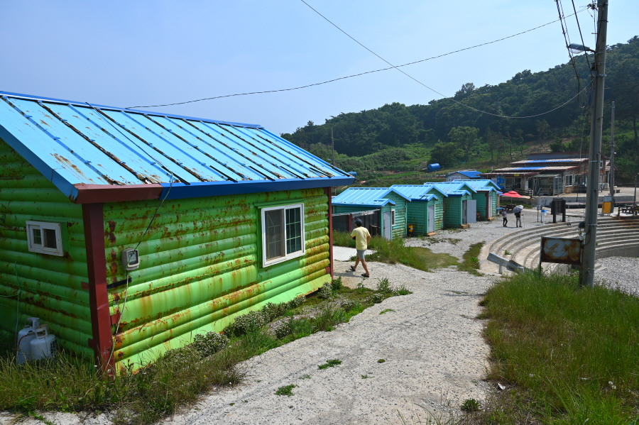 선유 3구 공영주차장에서 몽돌해변으로 직진합니다. 오른쪽 선착장에 빨간 ‘기도등대’가 보입니다.