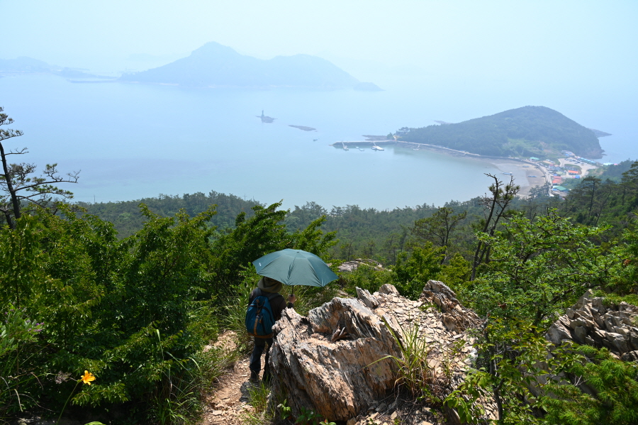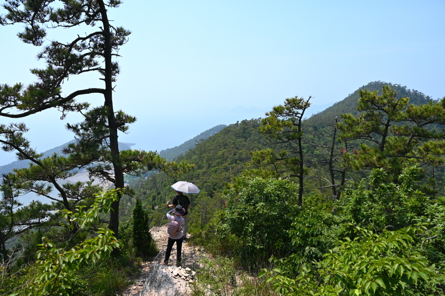 대봉 전망대에서 남악산 정상을 넘어 약 30분이면 몽돌해수욕장에 내려갑니다.