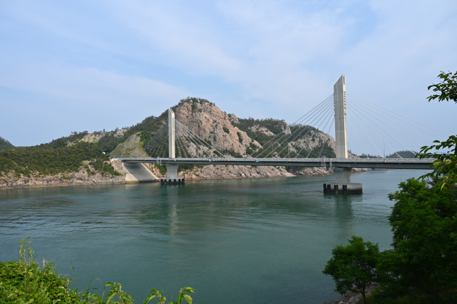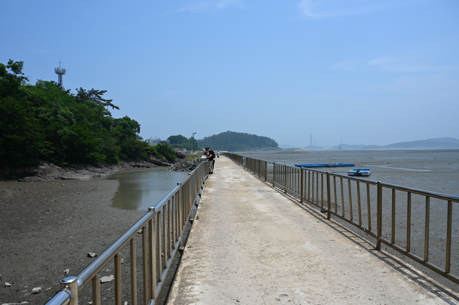 삼거리 도로에서 오른쪽이며 선유봉주차장을 지나 인도교인 장도교를 건넙니다. 왼쪽에 차가 다니는 장도대교를 새로 놓았습니다.