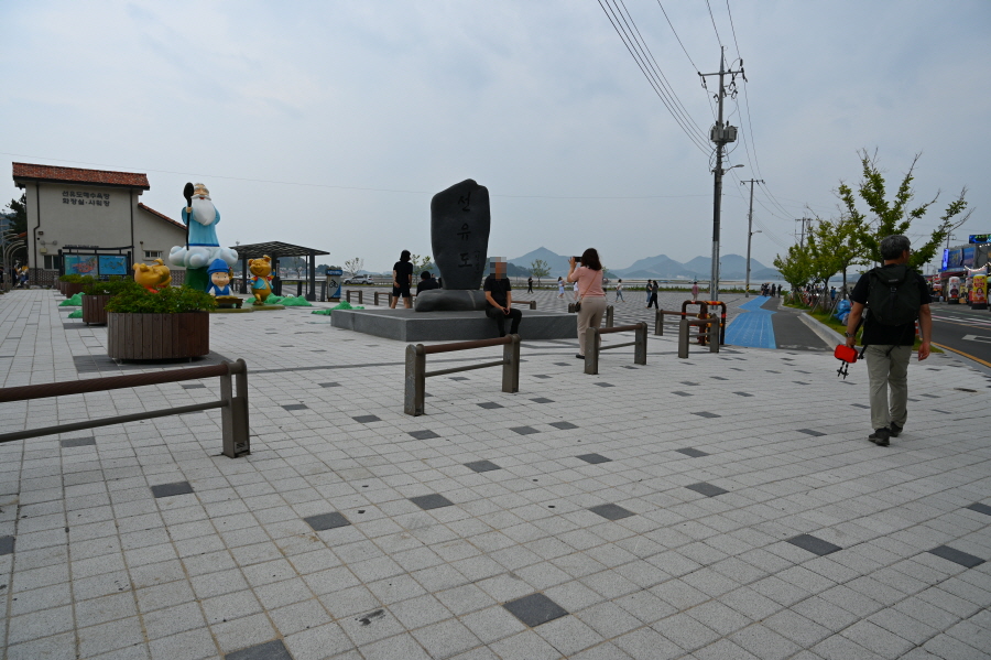 회전 교차로에서 오른쪽 망주봉 벼랑을 돌아 10분이면 앞서 거쳤던 솔섬 입구에서 왔던 길을 따라 선유도해수욕장 광장에 도착합니다.