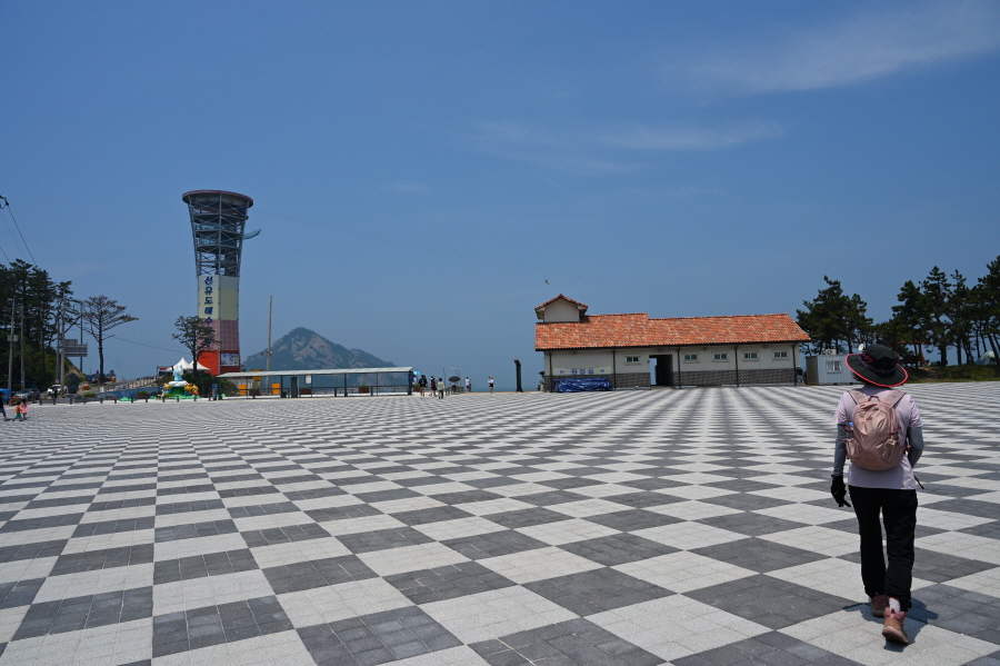 대장봉은 선유도 표석과 오른쪽 선유스카이선라인(짚라인)승강장을 지나 해안 도로를 걷습니다.
