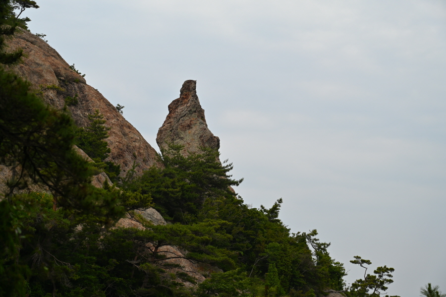 왼쪽에 8m 높이의 할매 바위가 보입니다. 과거에 급제한 할아버지를 마중 갔다가 따라오는 역졸을 애첩으로 오인한 할머니가 상심해 돌로 변했다는 할매 바위 전망장소와 어화대를 지나 15분이면 앞서 거쳤던 대장봉 갈림길에 도착합니다.