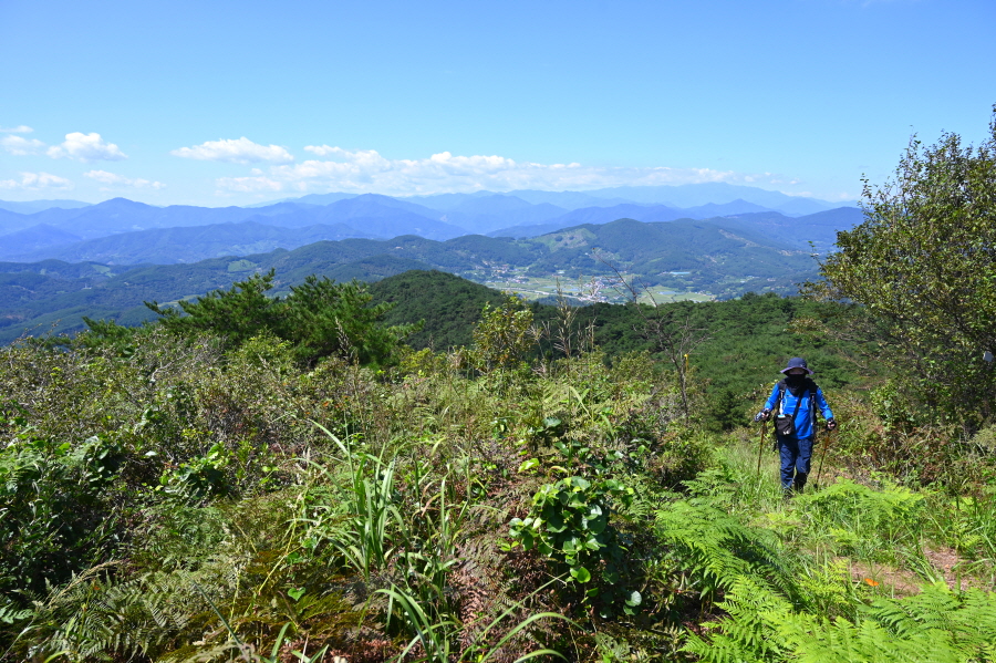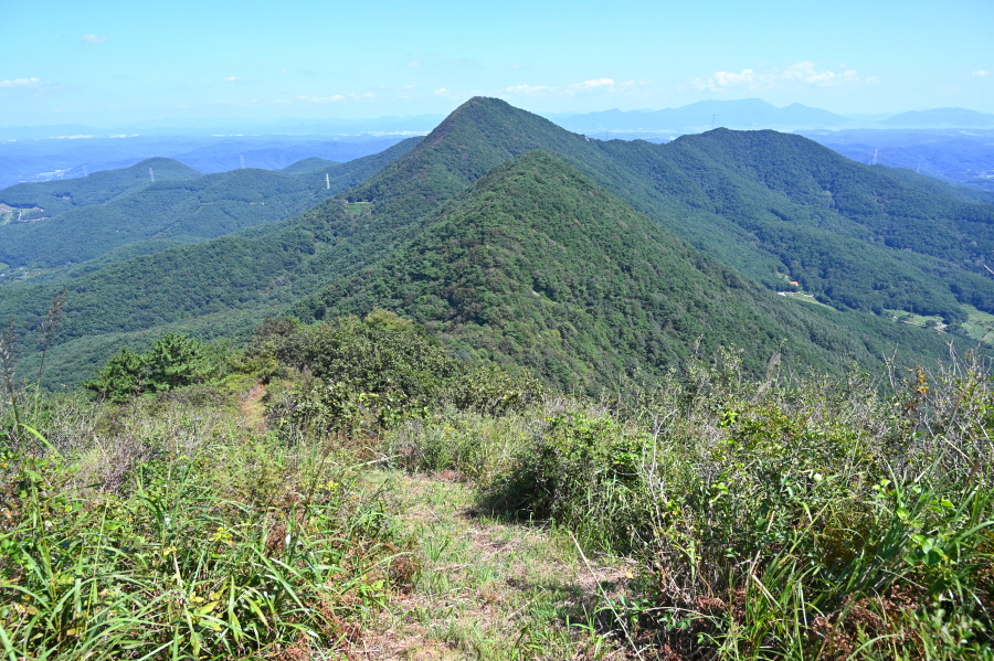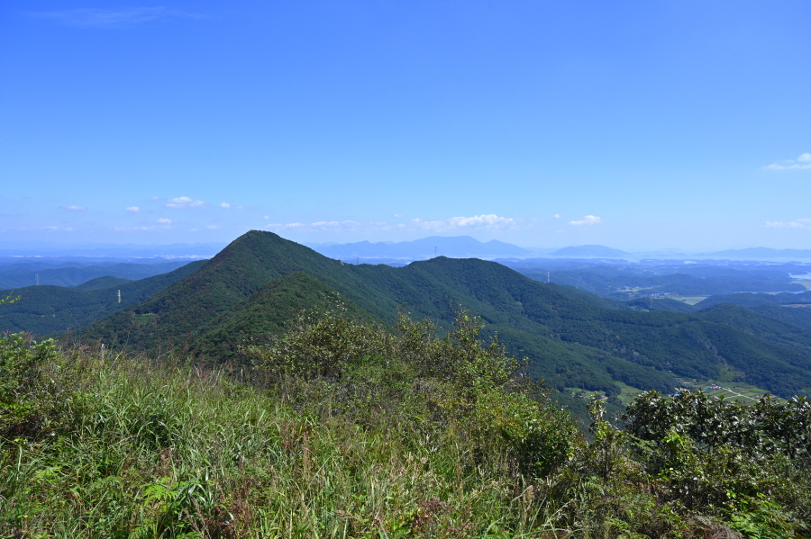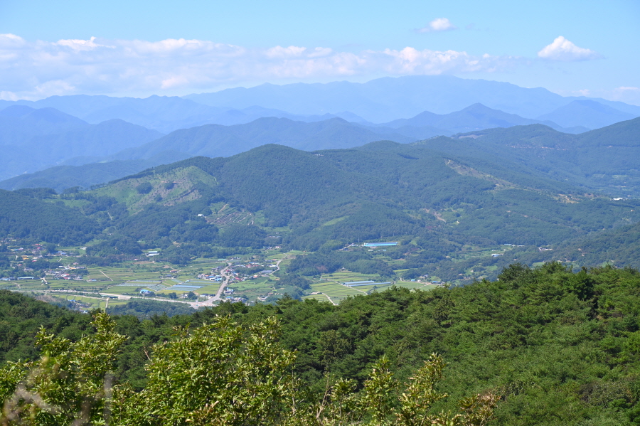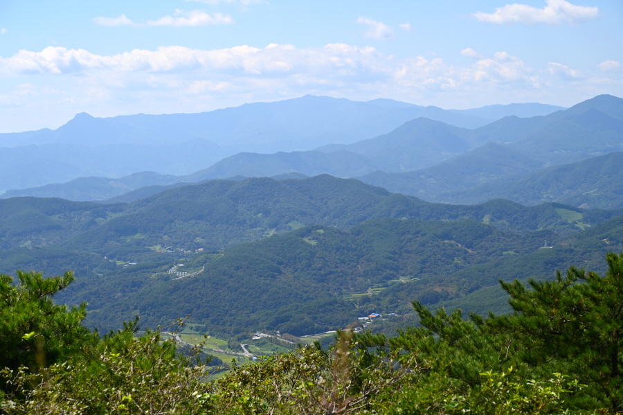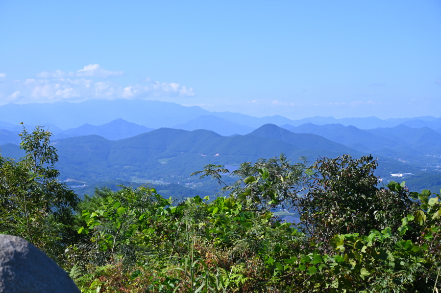 15분이면 상사봉으로 불리는 이명산 정상에 섭니다. 전망은 서쪽 일부가 나무에 가리지만 시루봉에서 보는 조망과 비슷합니다.