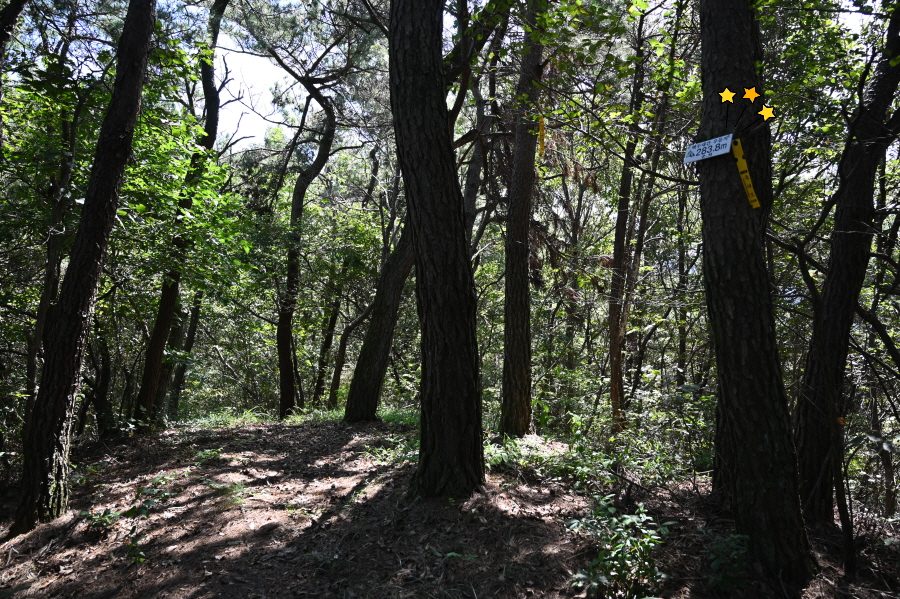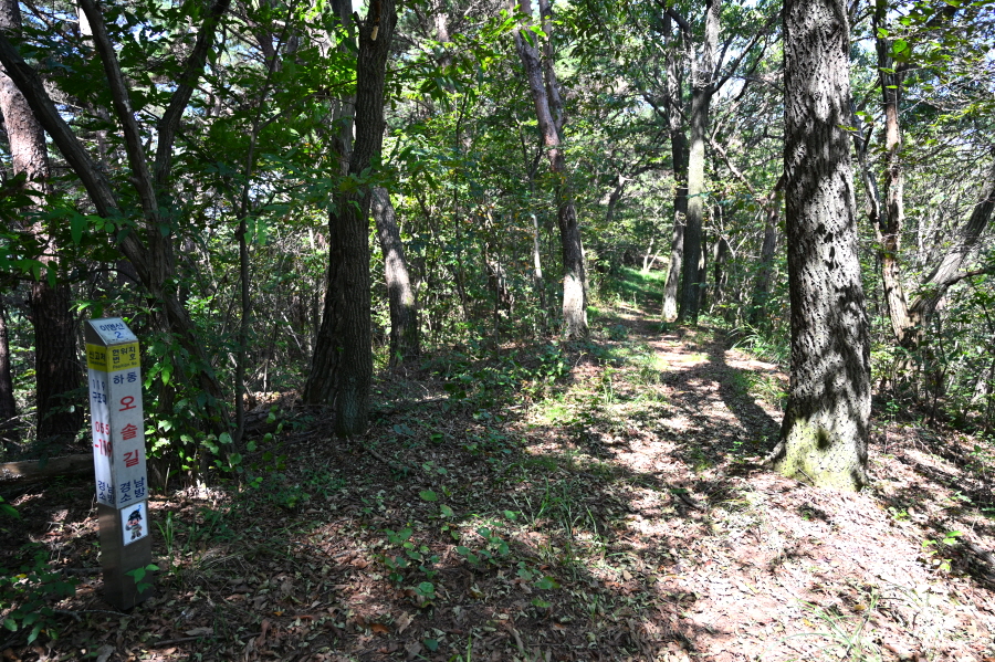 이명산 산허리를 돌아 밤나무 밭이 빼곡하게 들어섰는데 코스모스 꽃이 피면 토실한 알밤도 바닥에 떨어집니다. ‘오이밭에서는 신을 다시 신지 마라’는 속담처럼 수확이 한창인 밤나무 밭을 통과하면 괜히 오해를 살수있습니다. 이시기에는 지정된 등산로 이외에는 다니지 않도록 합니다.