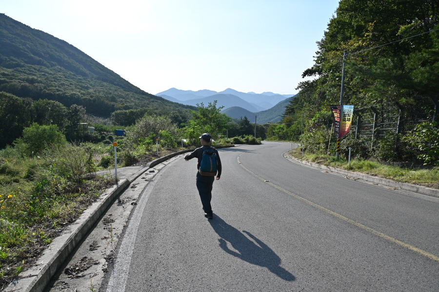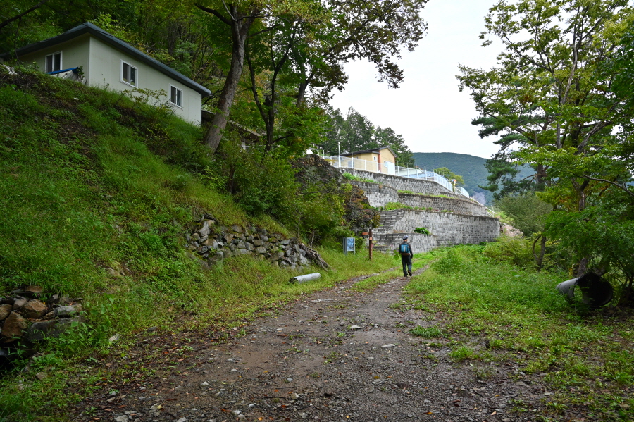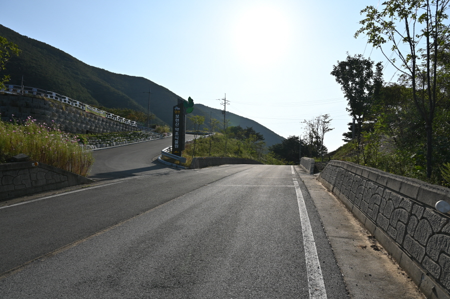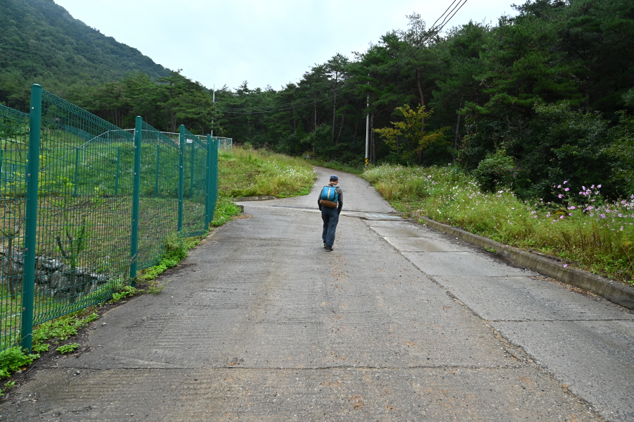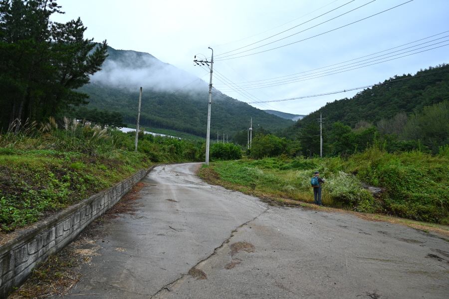 영천시 화북면 용소리 35번 국도의 법룡사 입구 정류장에서 오른쪽 화북면 태양광 발전소 방향으로 꺾으면서 시작합니다. 콘크리트길은 태양광 발전소를 지나 비포장 임도로 바뀝니다.