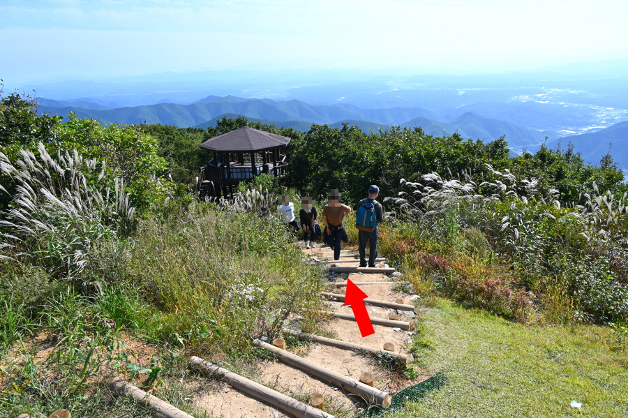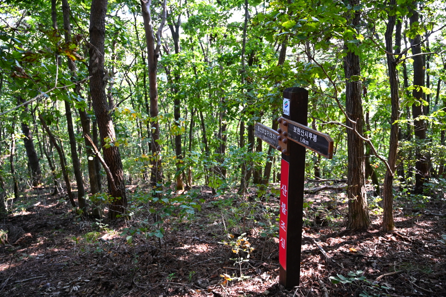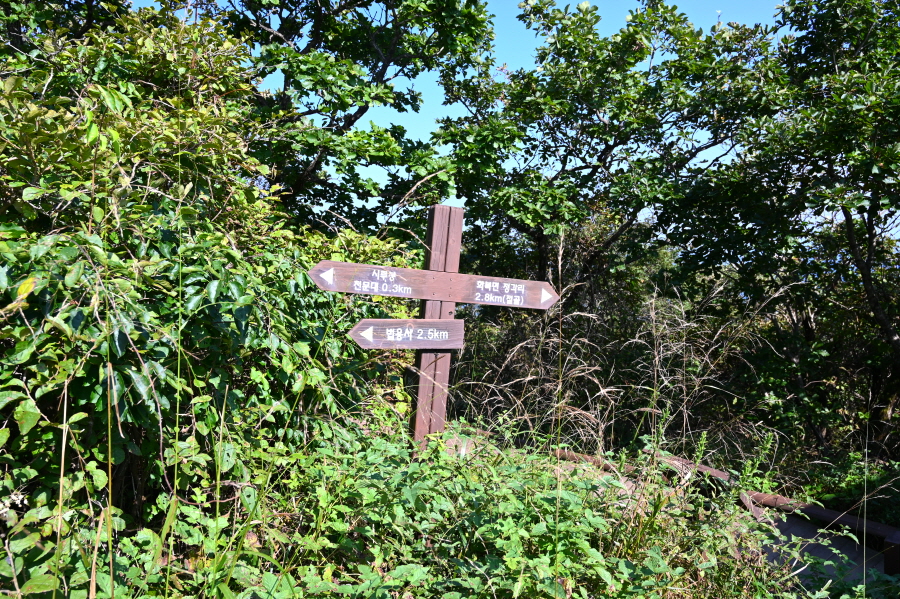 칠성각·신령각 직전에 왼쪽으로 틀어 손바닥 만한 체육공원을 거쳐 능선에서 오른쪽 보현산 정상(시루봉·2.6㎞)으로 향합니다.