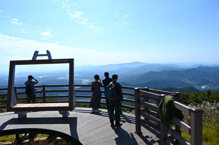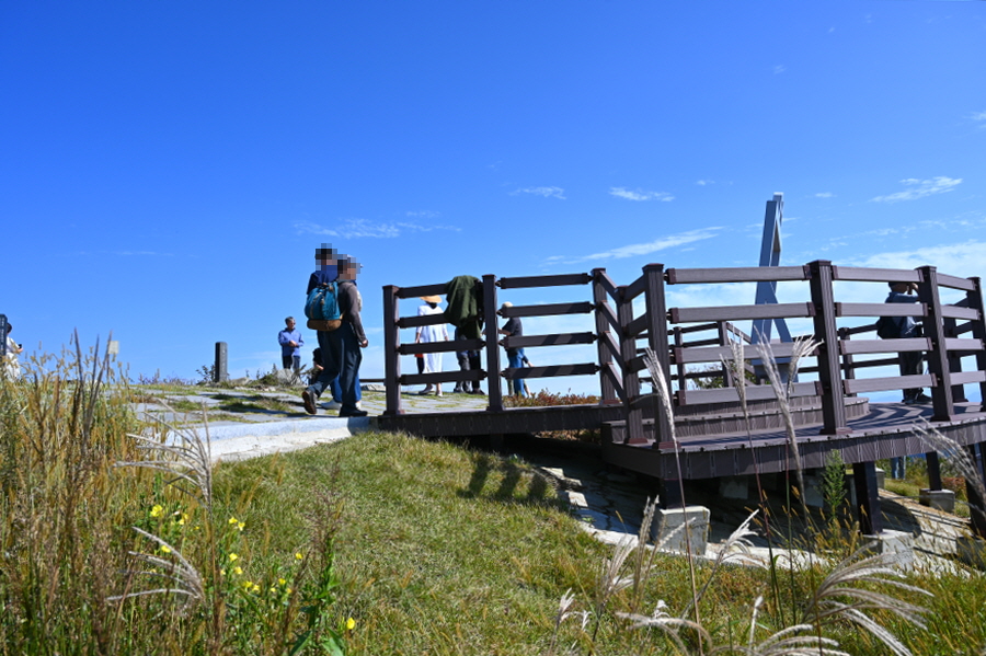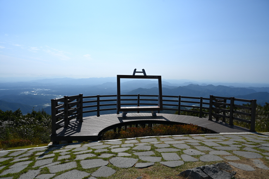 울타리를 따라 10분이면 조망이 열리는 시루봉 정상에 섭니다. 전망 덱이 서 있습니다.