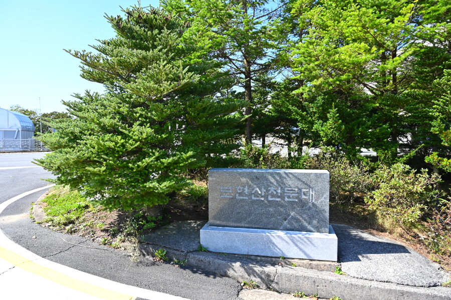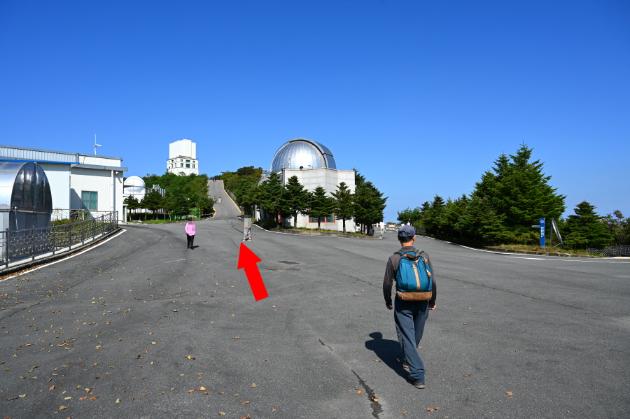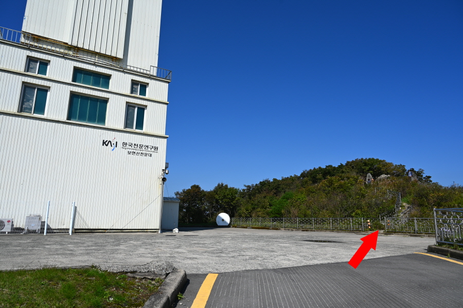 천문대 전시관을 관람하고 왼쪽으로 돌아 1.8m 광학망원경통 건물 앞이 보현산 주봉입니다.