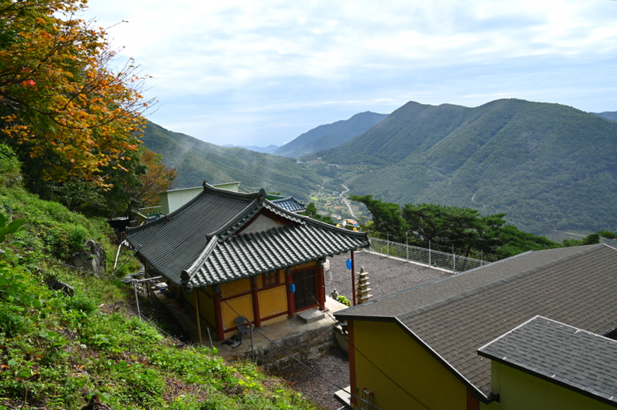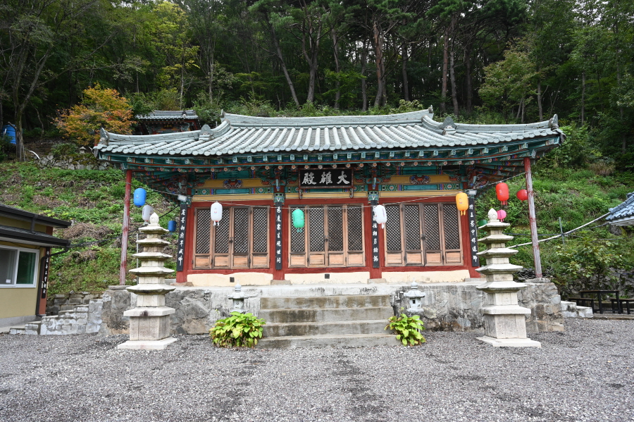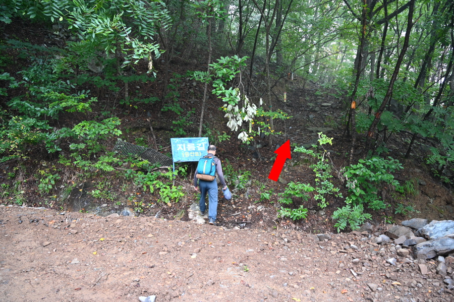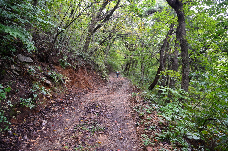 완만하던 임도는 오를수록 가팔라집니다. 들머리에서 35분이면 ‘지름길(등산로)’ 안내판이 나오고 오른쪽 산길로 들어섭니다. 절을 오르는 묵은 옛길로 다시 임도와 만나 약 15분이면 법룡사 마당에 도착합니다.