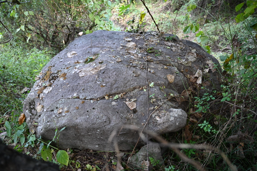 산행을 하고 등산안내도에 표시된 암바위와 수바위를 찾아 나섰습니다. 수바위는 현재 도성사 경내 종각 뒤 바위을 말합니다. 암바위는 200여m 숯골을 거슬러 올라가면 있다고 나오지만 주민들도 잘 몰랐습니다. 필자는 세 번이나 오르내린 끝에 계곡 오른쪽에 칡넝쿨로 가려진 암바위를 겨우 찾았습니다.