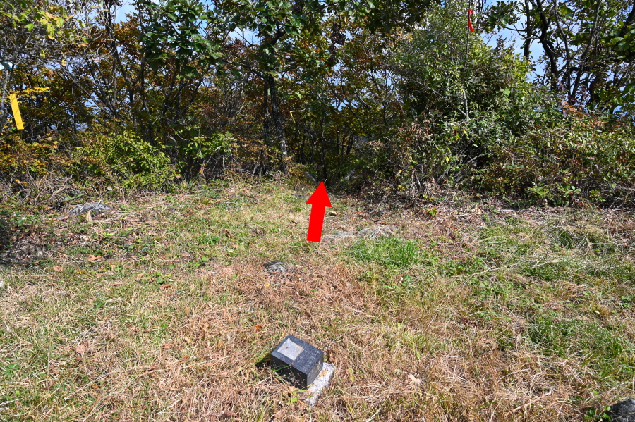 20분이면 송백리 주민이 만산바위·만산대배기로 불리는 선의산 정상에 올라섭니다. 삼각점과 일제강점기 때 박은 쇠말뚝을 뽑은 표시가 있고, 청도산악회와 경산시에서 각각 정상석을 세워 놓았습니다.